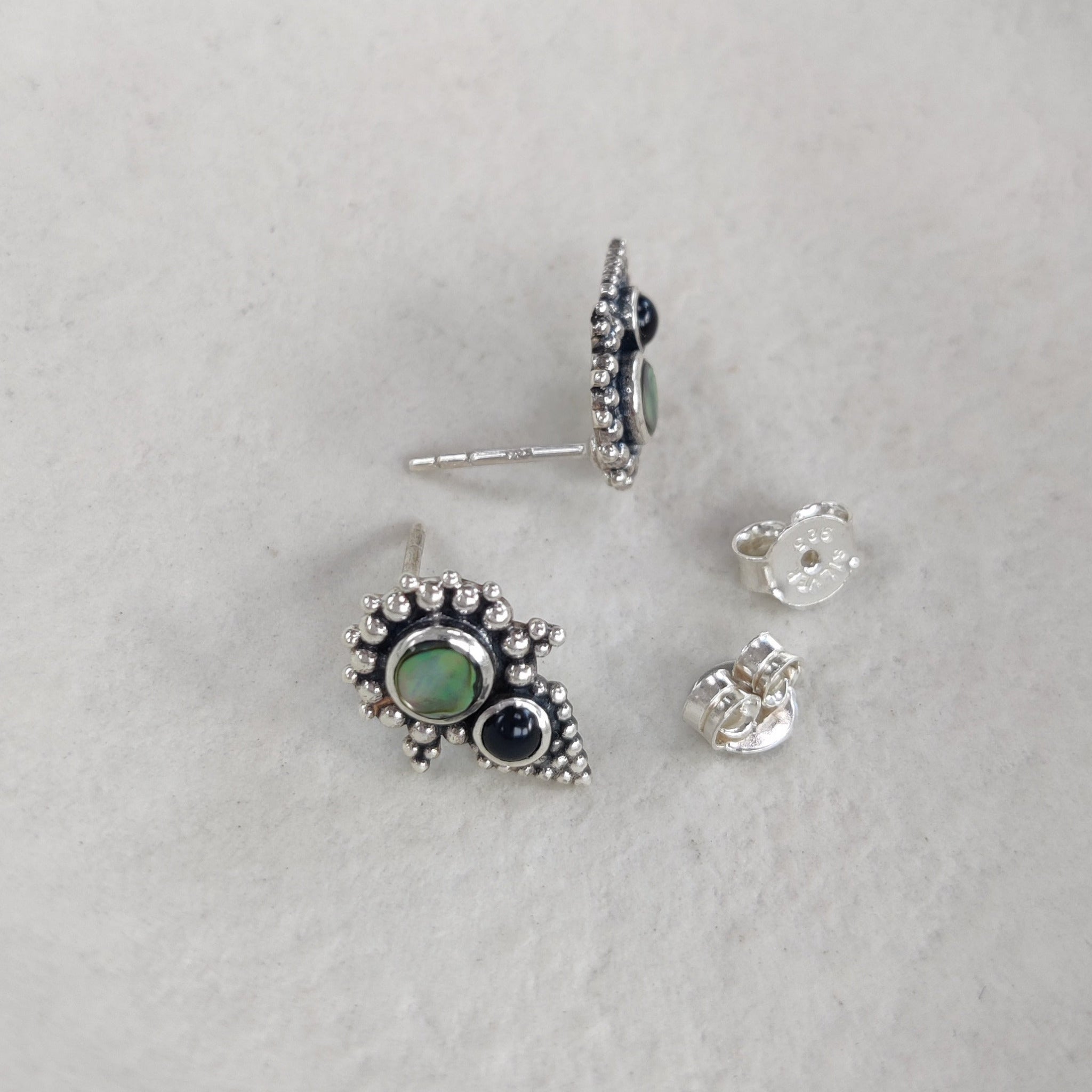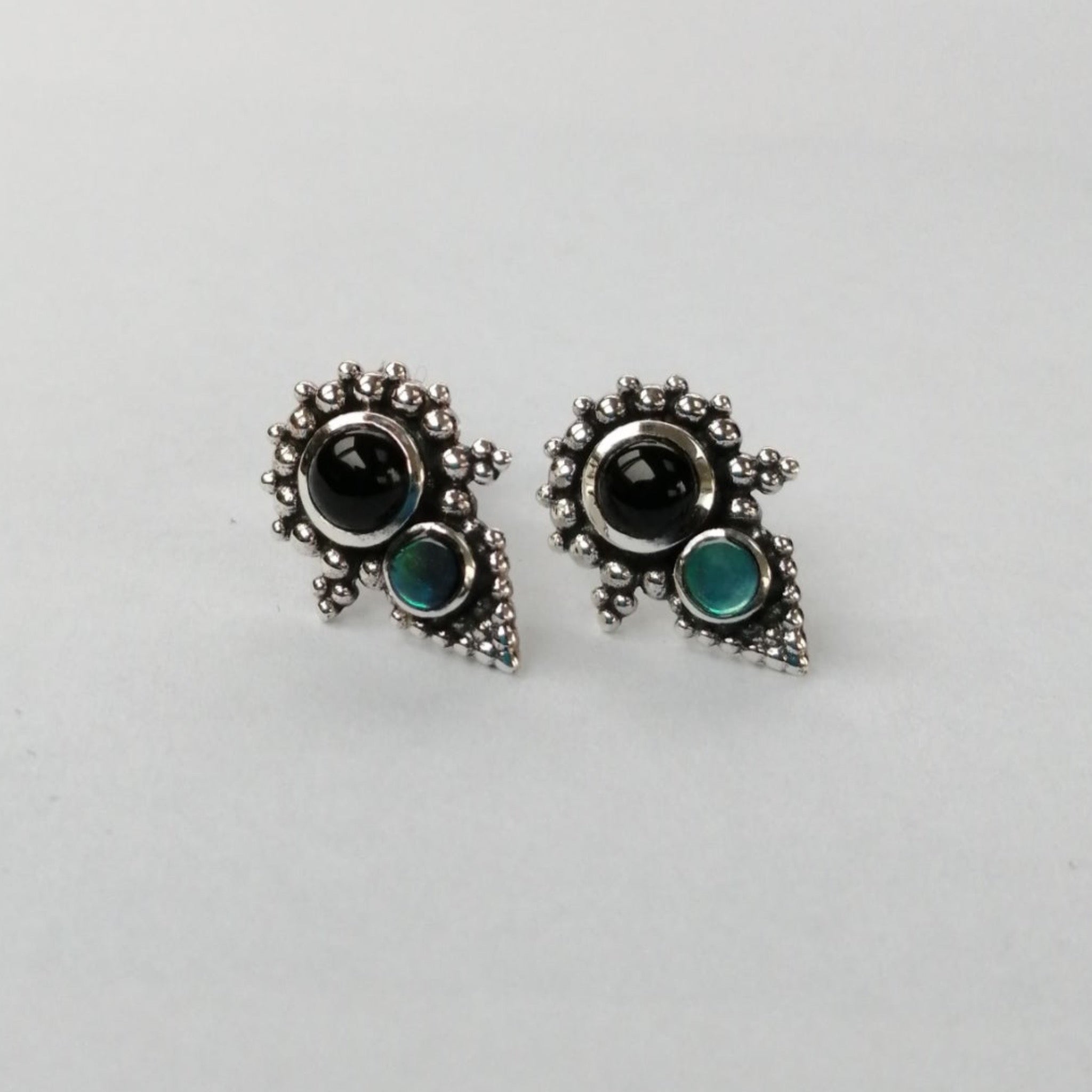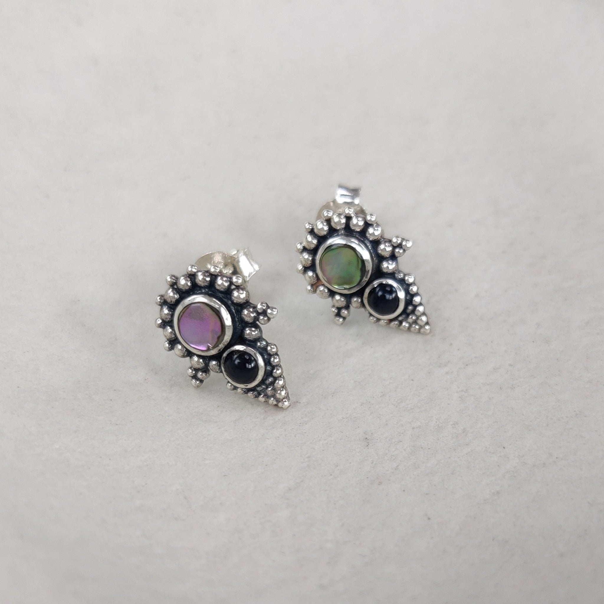 Pyramid Stud Earrings Sterling Silver - mixed gemstones