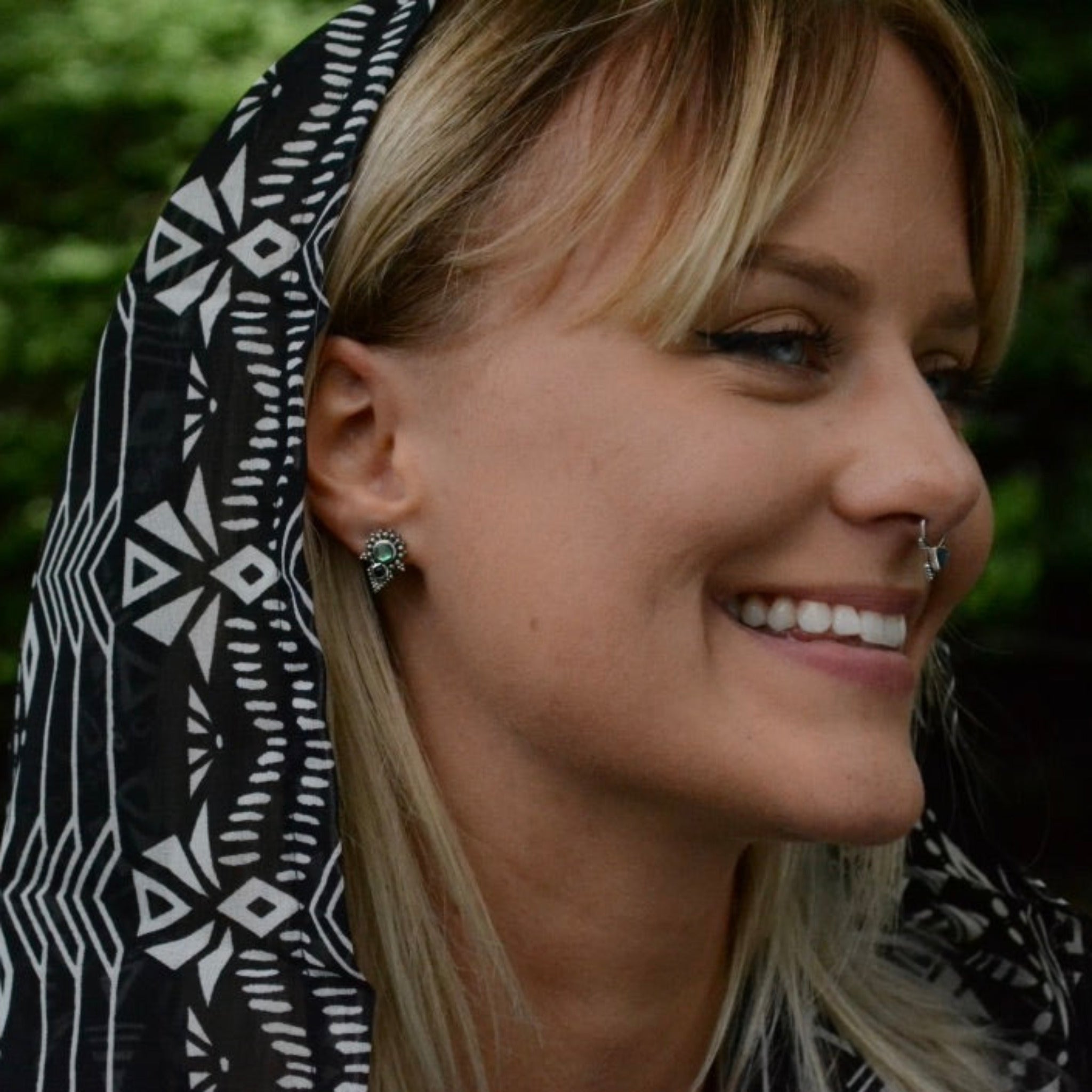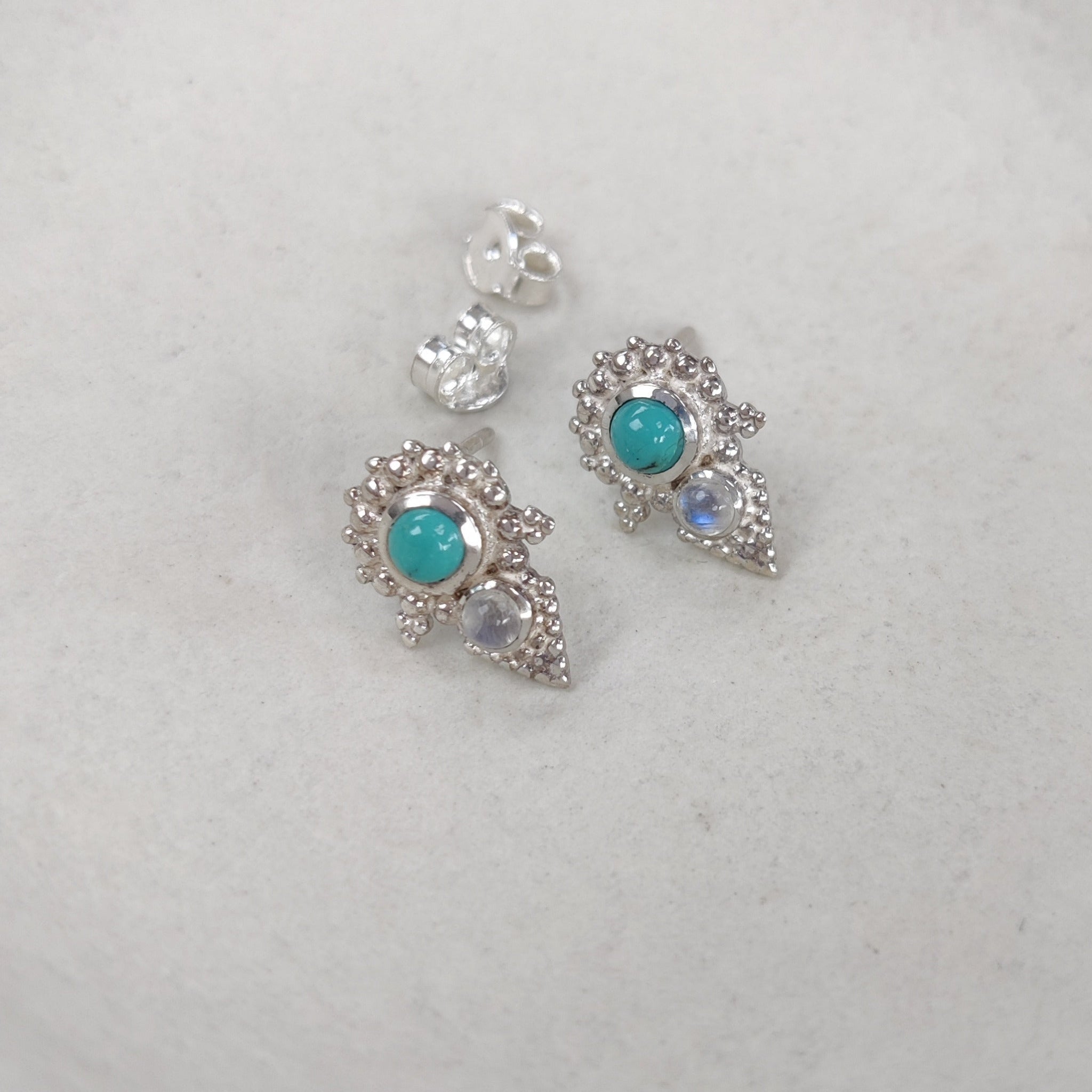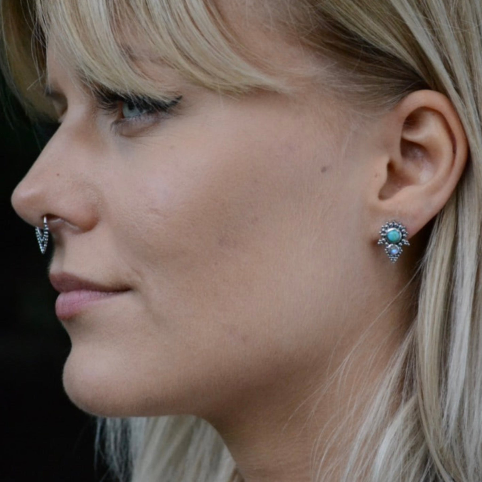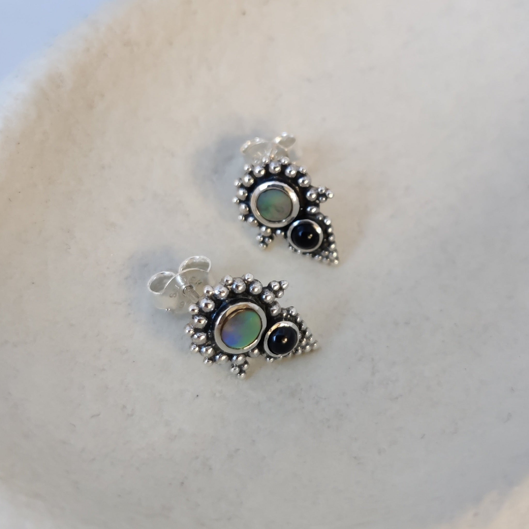 Pyramid Stud Earrings Sterling Silver - mixed gemstones