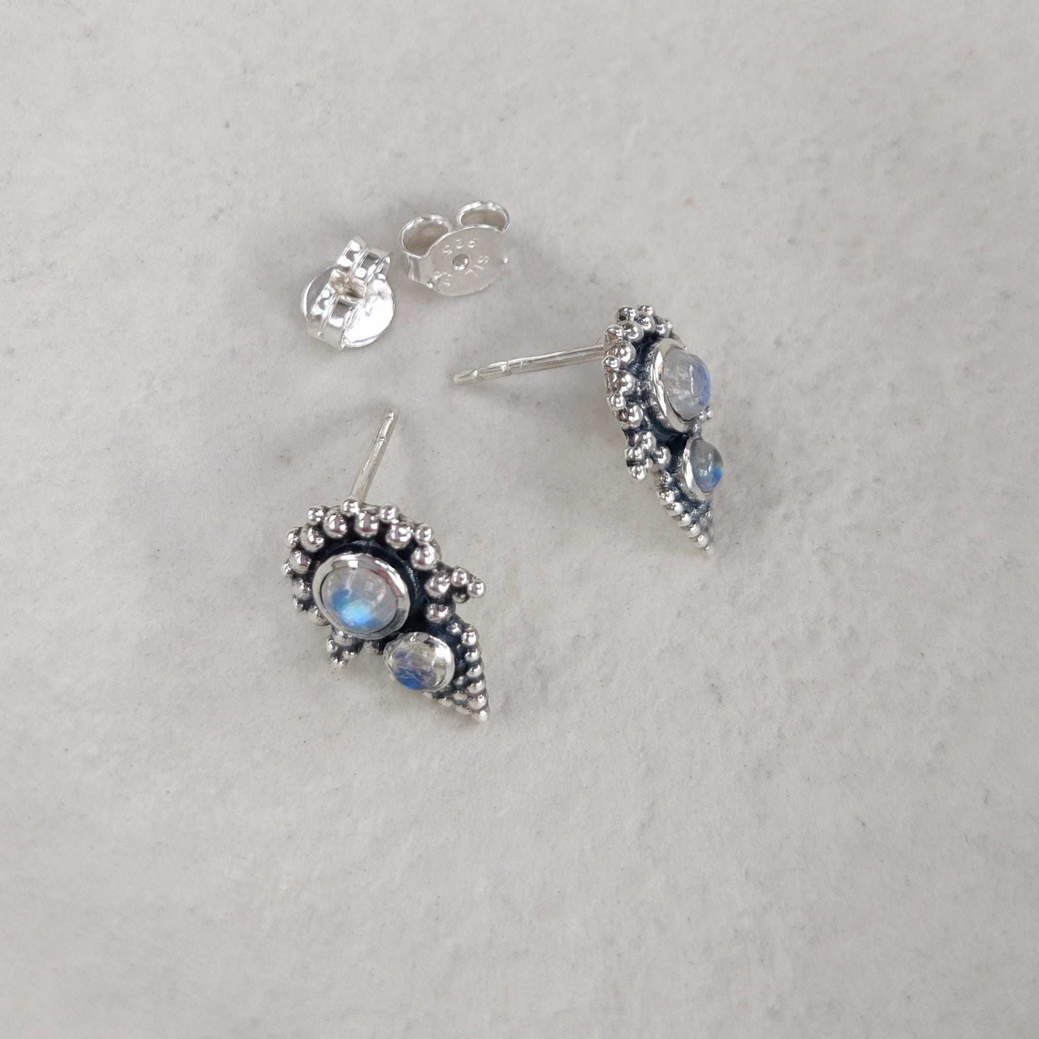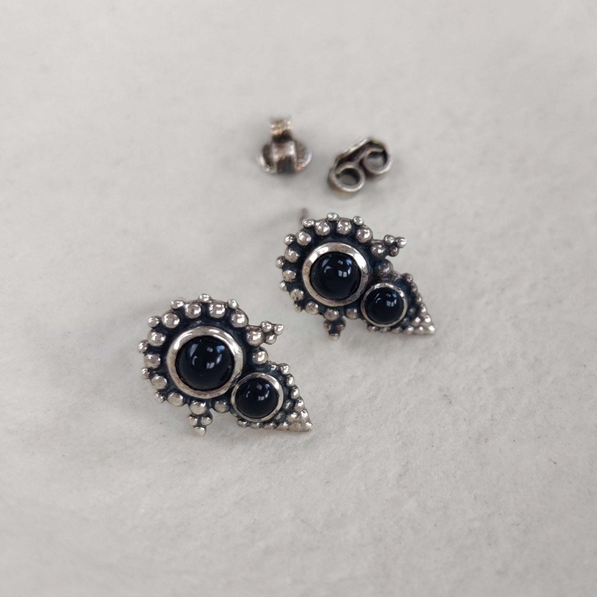 The pyramid-shaped earrings offer a unique and edgy look. Crafted from solid sterling silver with genuine gemstones, sprinkled with dotted details. These studs can be worn alone or combined with other adornments, such as earrings or hoops for an personal style.