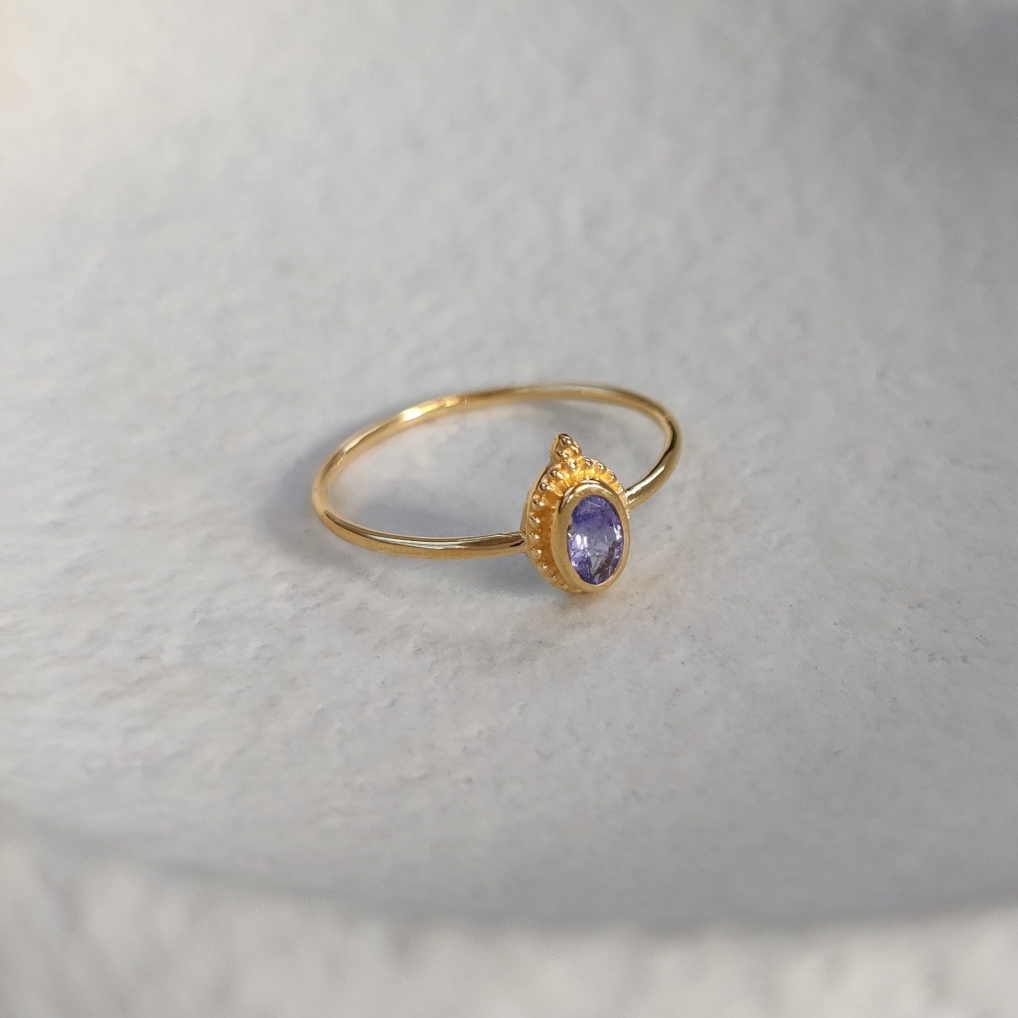 The Classic Ring with Tanzanite blends modern minimalism with spiritual depth. Crafted with a natural Tanzanite stone, a gem that symbolize intuition, transformation, and inner calm. Perfect for layering or wearing solo, this bohemian ring is a timeless treasure for every free-spirited soul.